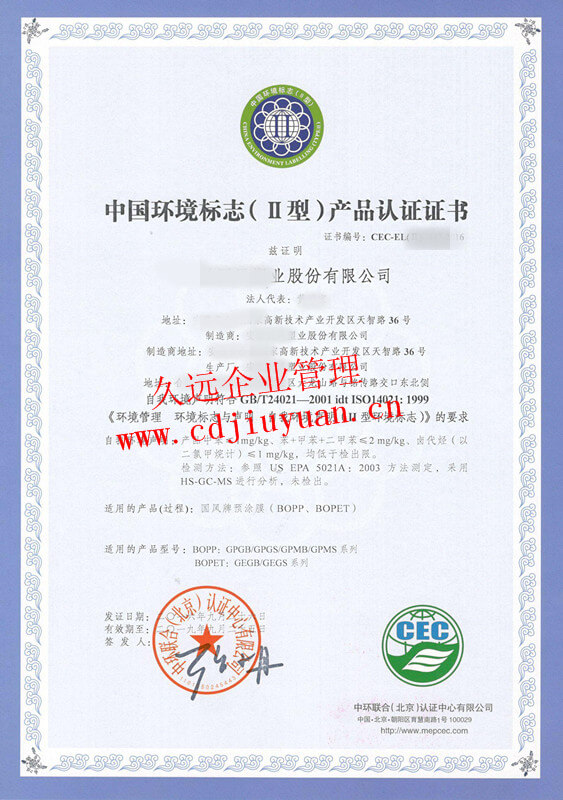 中國環(huán)境標(biāo)志產(chǎn)品認(rèn)證證書(十環(huán)認(rèn)證)